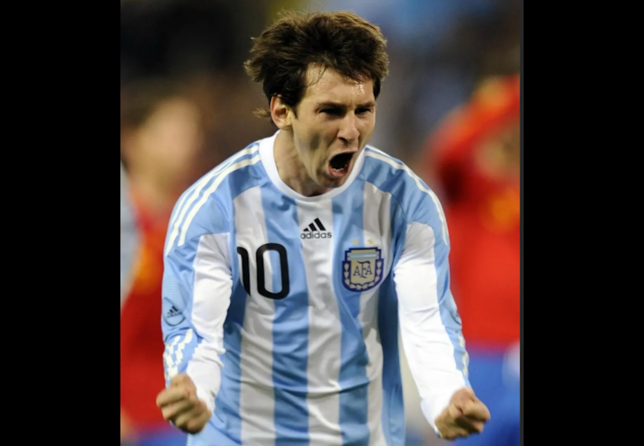 Messi con la la camiseta de la Selección Argentina diseñada por Martín Tibabuzo