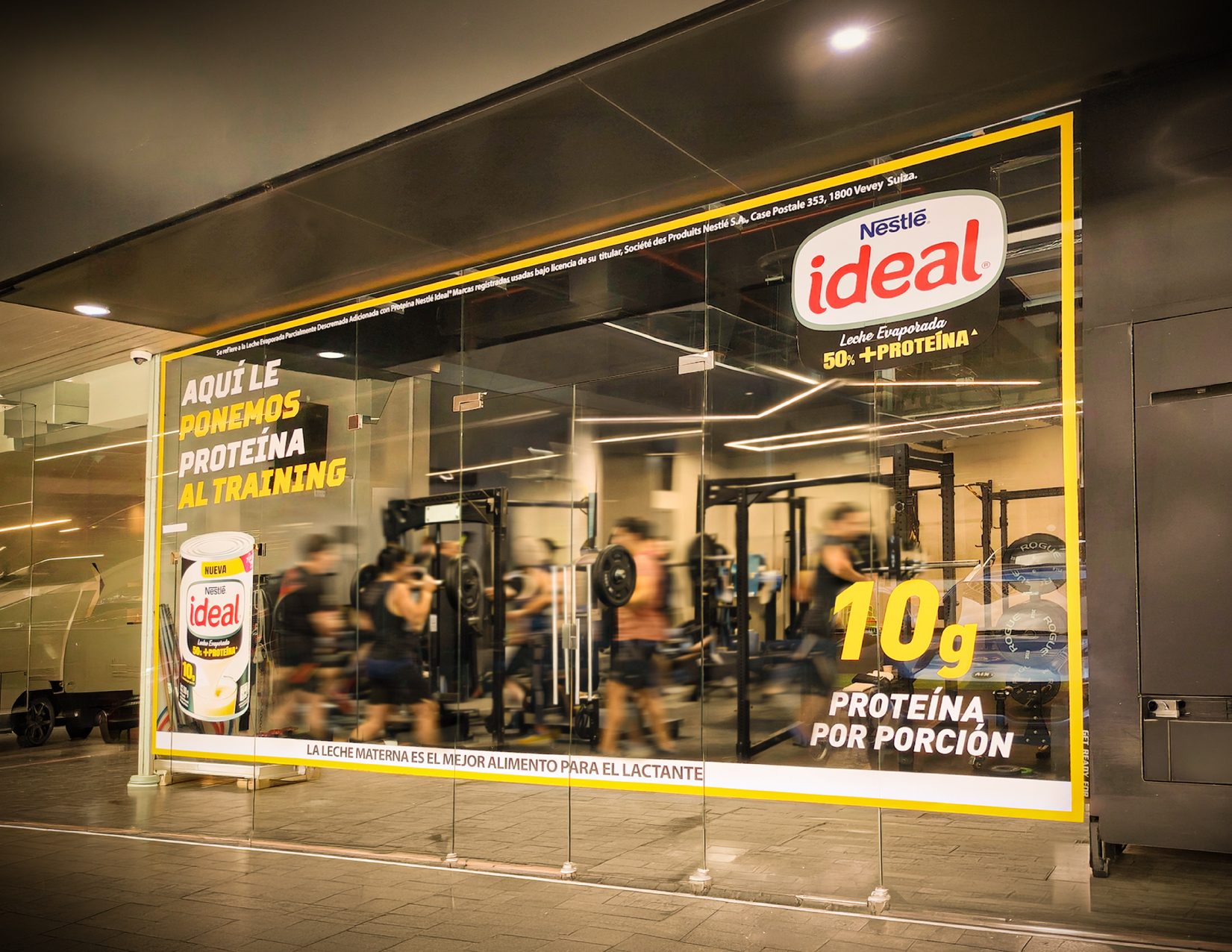 En el marco del lanzamiento de la nueva Leche Evaporada Ideal con 50% más de proteína, la agencia McCann Panamá lanzó una innovadora propuesta de Vía Pública. El nuevo producto lácteo brinda 10 gramos de proteína por porción, lo cual la hace ideal para los deportistas. En ese contexto intervino las ventanas de espacios donde se practican distintas disciplinas como crossfit, gimnasios y pádel, convirtiéndolas en vallas vivas.