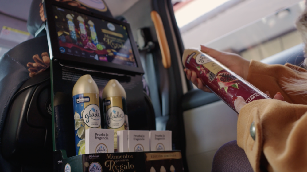 Glade es un ejemplo claro. Para impulsar su línea de fragancias Edición Limitada, OLA y Glade llevaron su creatividad a los trayectos urbanos con una activación inspirada en la temporada navideña, creando una experiencia sensorial que incluyó un display físico que impulsó la prueba de las tres fragancia, fundas y cojines brandeados y contextualizados alrededor del mensaje a posicionar y finalmente, contenido in-tablet vinculado a los canales de compra digitales de la marca.