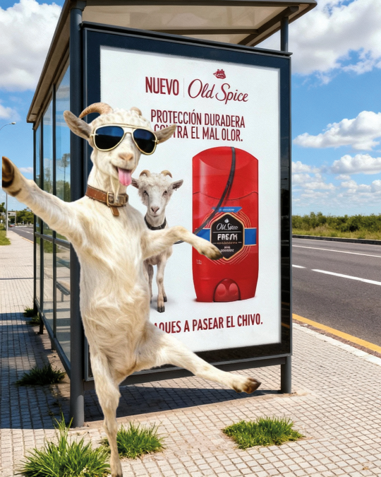 El trabajo ya comenzó con el desarrollo de la primera campaña, concebida nativamente para redes sociales. Antes incluso del estreno del comercial, Old Spice decidió “liberar” al protagonista del spot —el ya inolvidable chivo— en la vida real. Durante una semana, el personaje apareció de forma inesperada en distintos puntos icónicos, mostrándose en redes con códigos bien argentinos, sin perder la estética fresca, irónica y absurda del universo Old Spice.