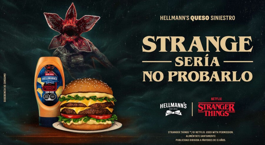 A nivel food branding, Hellmann’s y Netflix desarrollaron una alianza enfocada en acompañar el estreno final de la serie, conectando indulgencia, cultura pop y rituales de consumo. El objetivo fue insertarse en un momento emocionalmente cargado para la audiencia, no solo vender un producto.